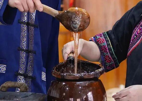 苗岭天然草本+稻米发酵滤液,九道古法、九蒸九晒,再经过12小时熬制后,即可用来洗头。